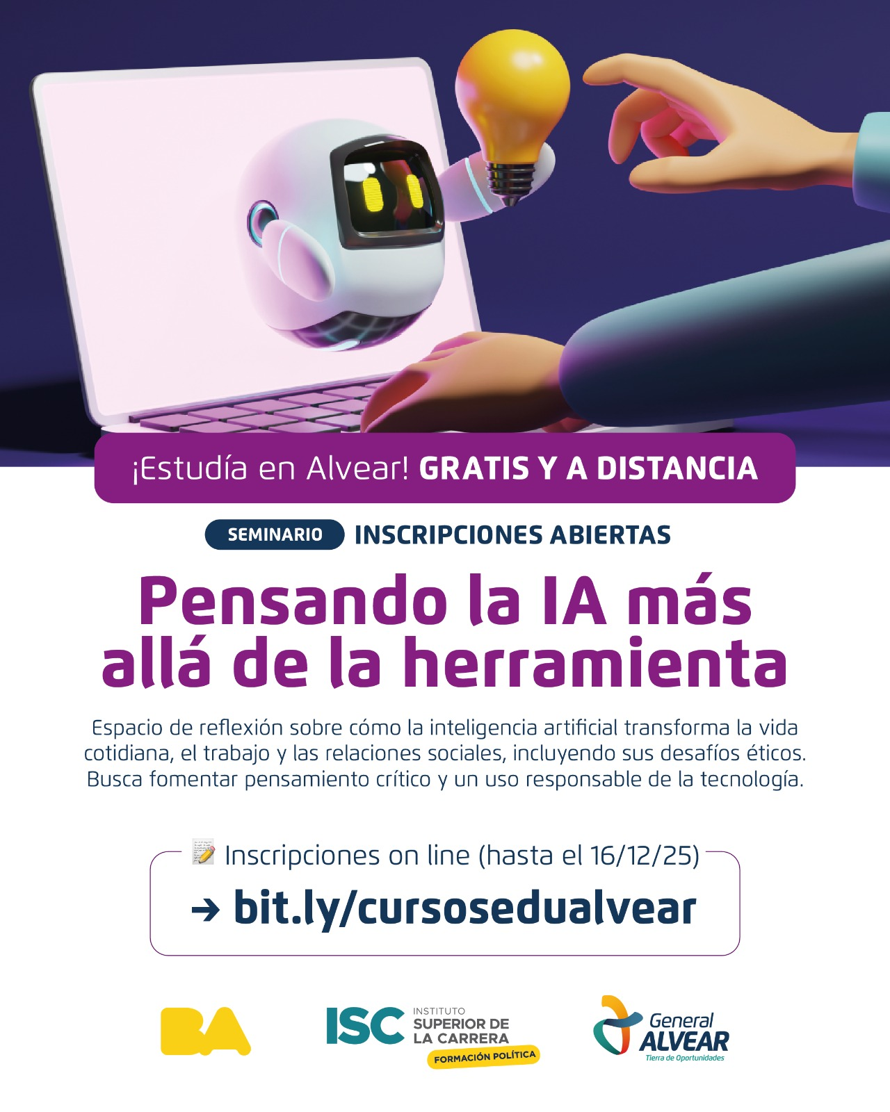 La Municipalidad de General Alvear, en convenio con el Instituto Superior de la Carrera, ofrece un seminario sobre Inteligencia Artificial y tres cursos de ofimática con certificación.