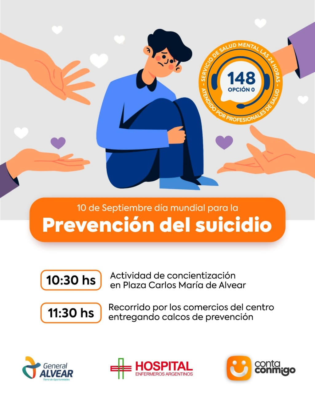 En el marco del Día Mundial para la Prevención del Suicidio, el Hospital Enfermeros Argentinos, en articulación con la Municipalidad de General Alvear y el programa «Contá Conmigo», desarrolló una jornada de concientización abierta a toda la comunidad. Las actividades comenzaron a las 10:30 horas en la Plaza Carlos María de Alvear con una intervención pública de sensibilización, y continuaron a las 11:30 con un recorrido por comercios del centro.