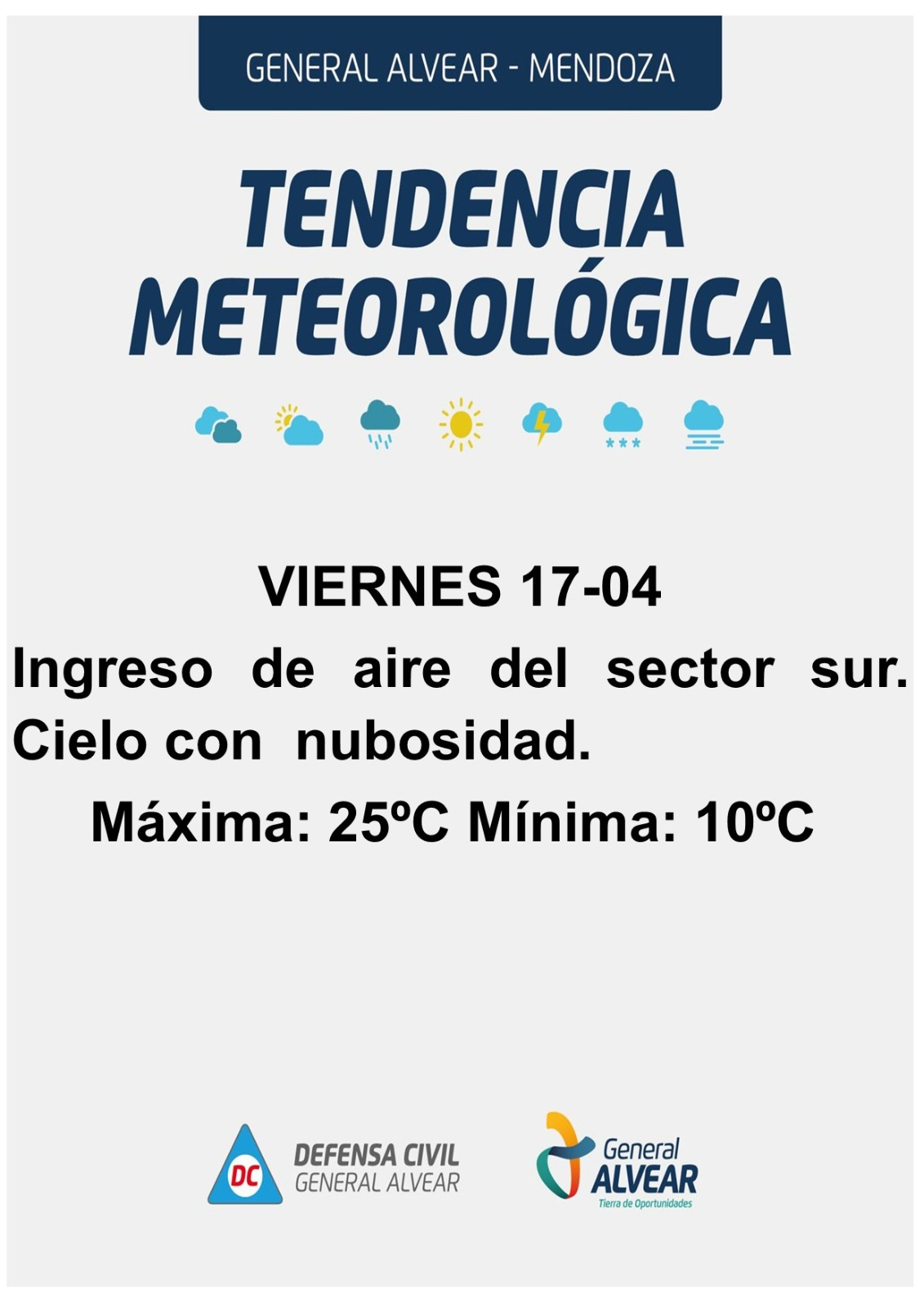 El otoño se hará sentir con fuerza en General Alvear durante las próximas horas. Lo que comenzará como un viernes agradable se transformará en un escenario de inestabilidad y frío intenso debido al avance de una masa de aire polar que afectará a todo el sur mendocino.