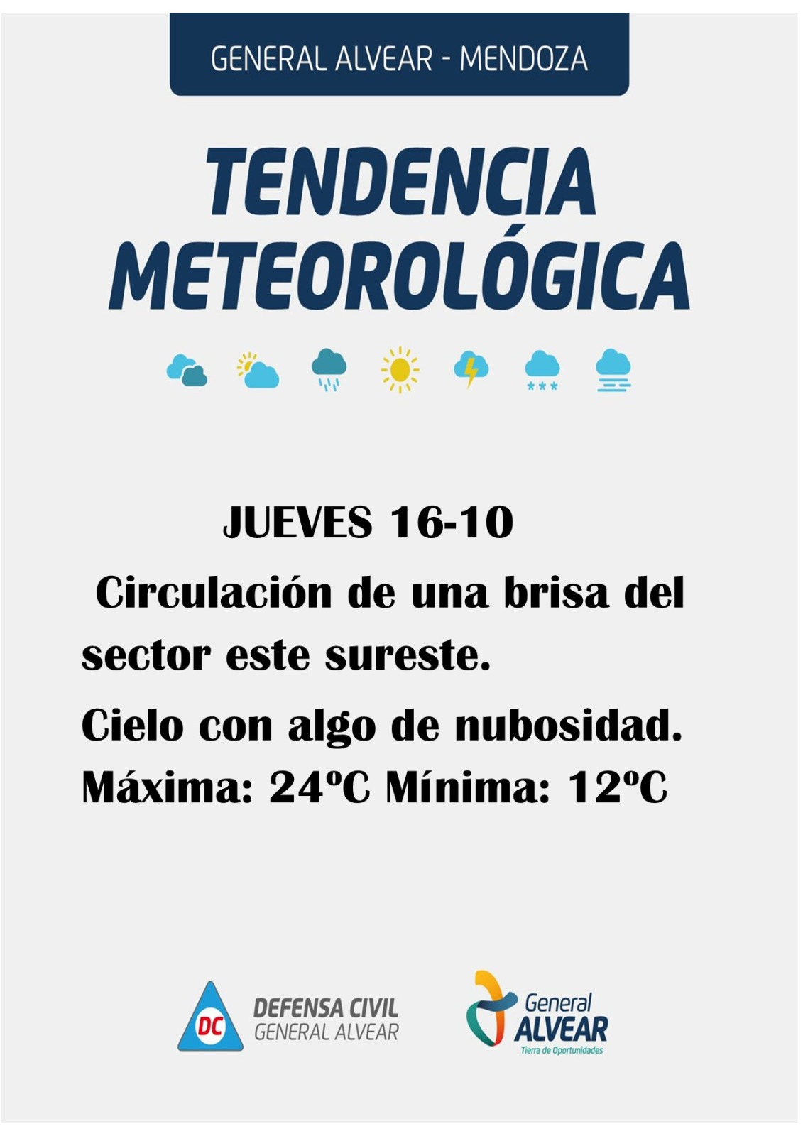 El pronóstico para este jueves en General Alvear indica una jornada de transición tras el fuerte viento Zonda.