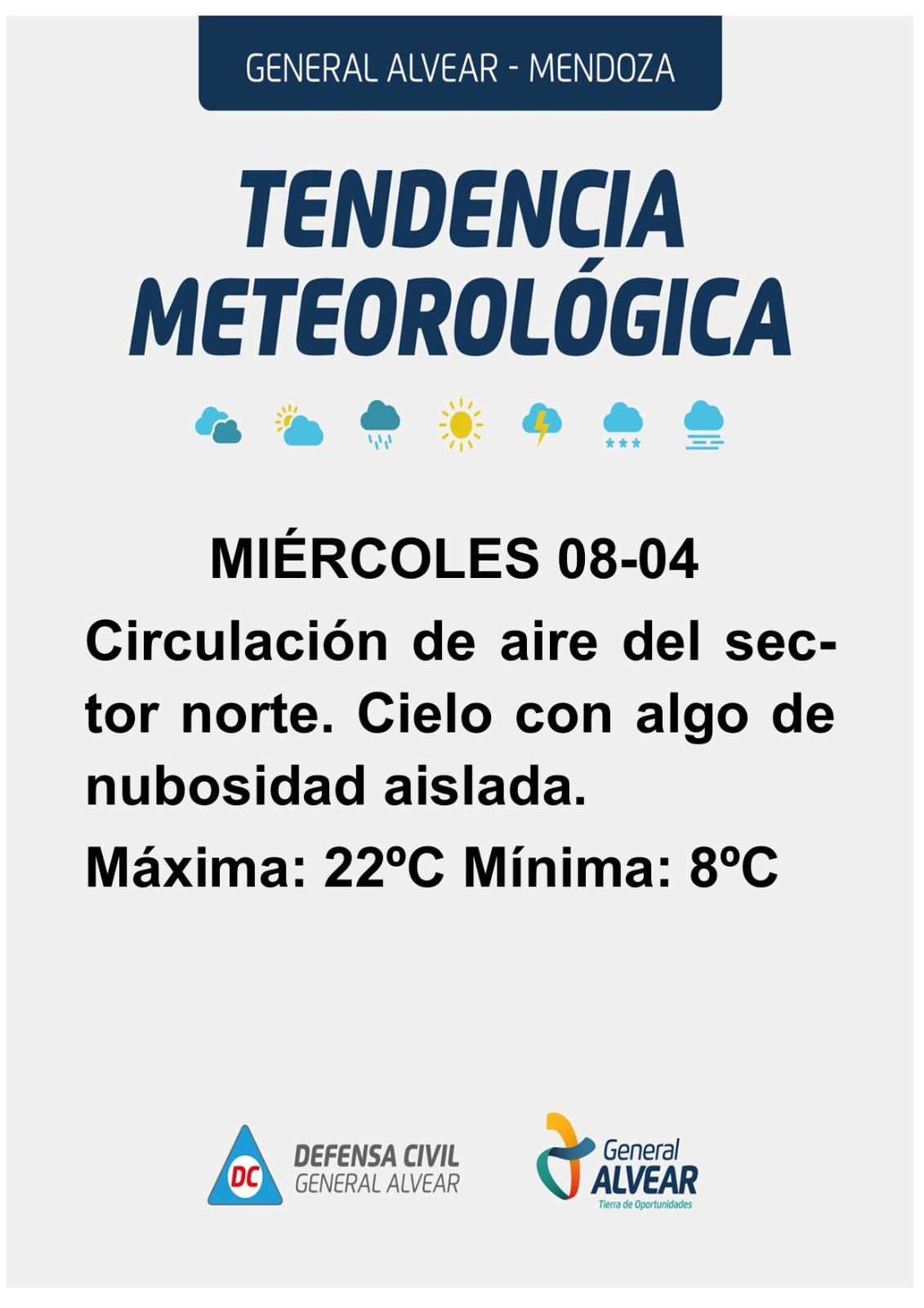 El departamento de General Alvear transita una semana con condiciones meteorológicas sumamente estables y agradables. Según el último reporte, la circulación de aire del sector norte será la gran protagonista, permitiendo que el termómetro escale posiciones de manera sostenida hasta el próximo viernes.