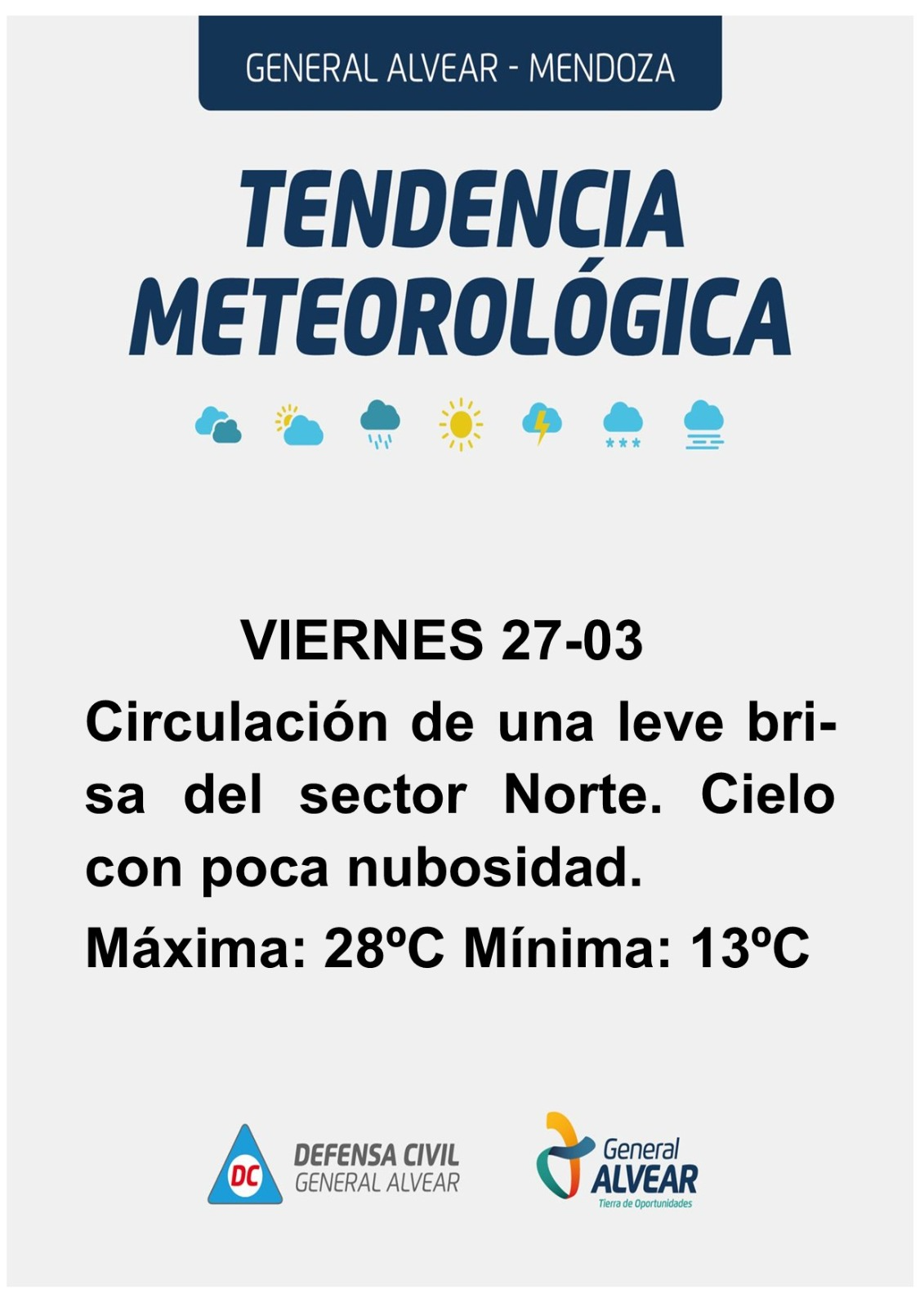 General Alvear se encamina hacia un cierre de marzo con condiciones meteorológicas excepcionales. Tras un inicio de otoño con mañanas frescas, la tendencia para este último fin de semana del mes indica un marcado ascenso de la temperatura, impulsado por una persistente brisa del sector norte que elevará los registros máximos por encima de los 30 grados.