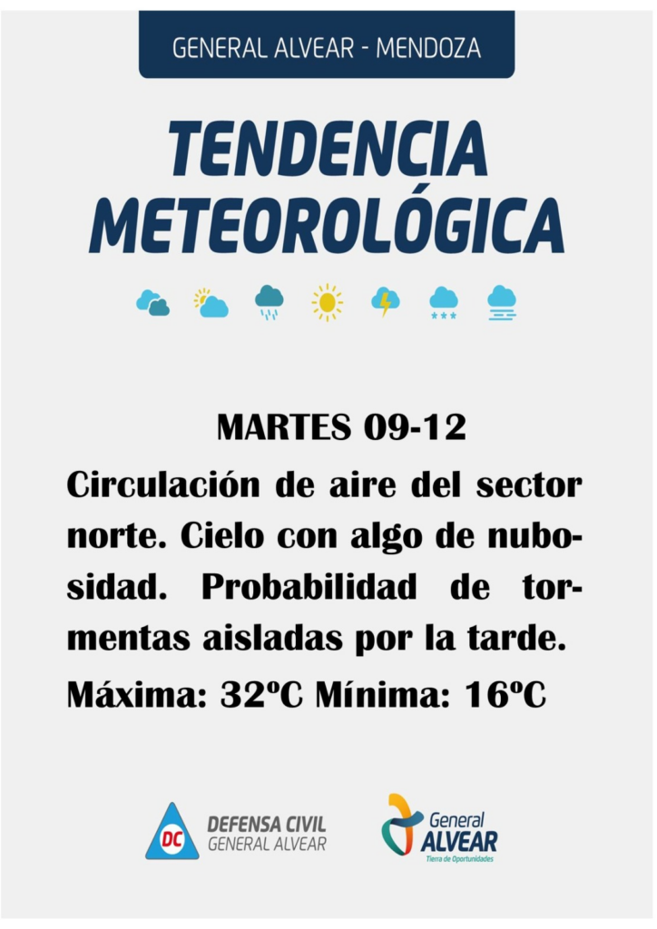 - Fenómenos: Se espera la formación de tormentas en la región durante las primeras horas de la tarde.